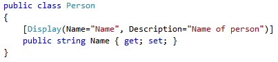 Start by looking at your data class. It’s possible to add a Display attribute to your data class. The Display attribute takes several parameters and among them a Description. Before you can use the Display attribute you need to make a reference to the System.ComponentModel.DataAnnotations.dll assembly.
