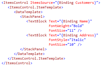 For this demo I have created a Silverlight project with a view called CustomerView.xaml and a viewmodel called CustomerViewModel.cs. The view contains an ItemsControl with an ItemTemplate that I will use to display a list of Customers and their address. I have bound the ItemsSource to the Customers property from my viewmodel.