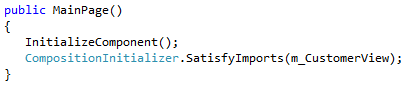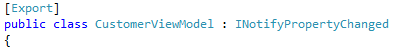 I have added an Export attribute to the CustomerViewModel class. The Export attribute declares that this class provides a particular kind of service.