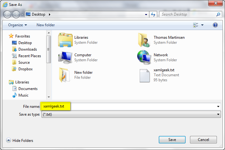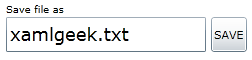 When the user clicks the Save-button the SaveFileDialog is shown and the user can save the file locally on the computer. The text from the TextBox is parsed to the SaveFileDialog as the default file name.