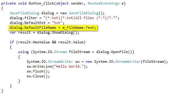 A long requested feature coming with Silverlight 5 is the opportunity to set the default file name in the SaveFileDialog. In previous versions of Silverlight this missing feature have resulted in some bad user experiences, but finally it is here and it is easy to use.