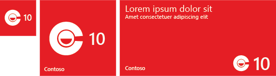 The iconic tile template displays an image in the center of the tile and support all three available sizes: small, medium and wide. The properties for the iconic tile template is available using the IconicTileData class.