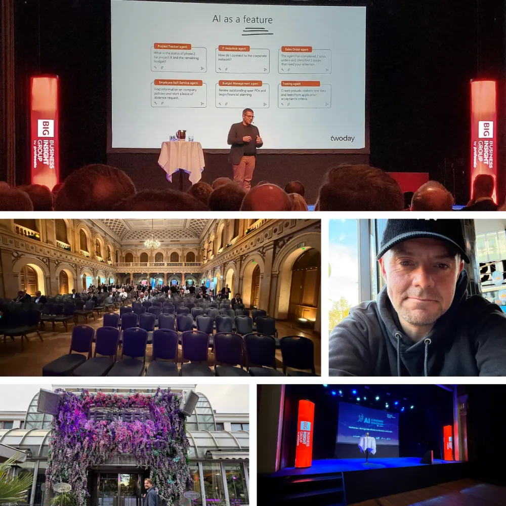 Formålet med turen var primært at tale på AI & Business Strategy-konferencen onsdag den 8. oktober, hvor jeg holdt oplægget “AI-driven companies of the future”. Her delte jeg mine tanker om, hvordan virksomheder bliver påvirket af AI, hvordan man bevæger sig fra at have enkelte AI-features til at have AI som en integreret del af kernen, og hvordan vi i twoday selv har taget de første skridt på den rejse – med både erfaringer og læringer undervejs.